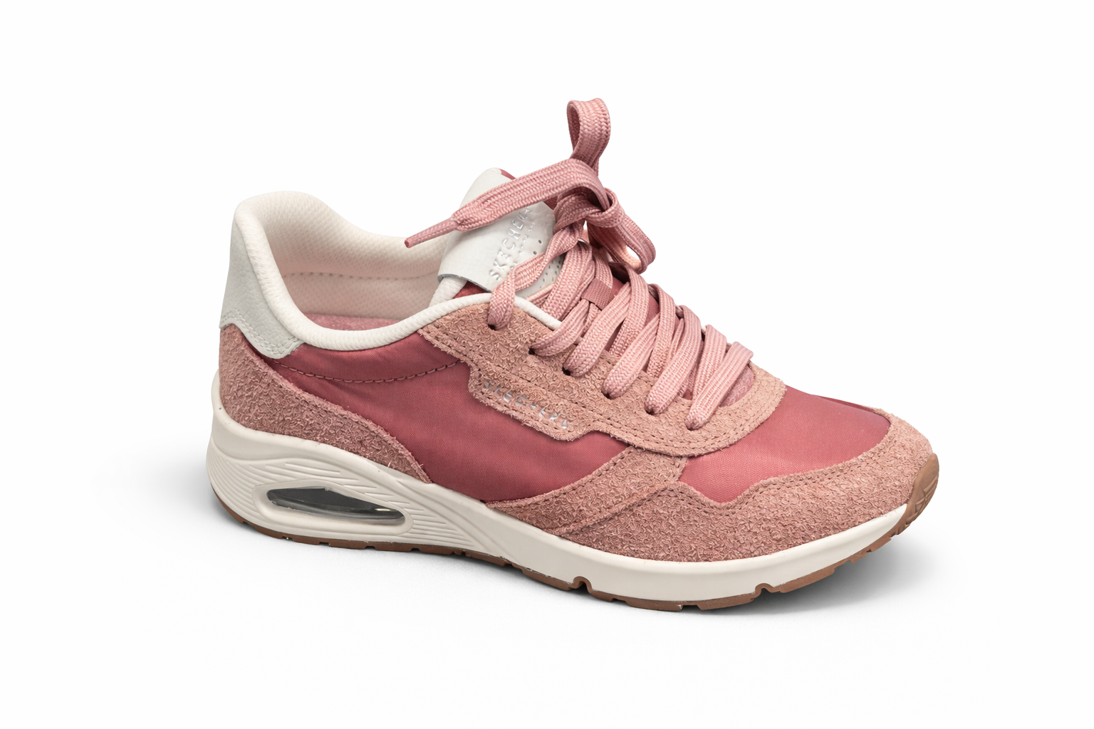 Cette basket basse affiche un style féminin, tendance et légèrement rétro. Son mélange de textures et de nuances de rose lui donne un look doux et élégant, parfait pour un usage quotidien.