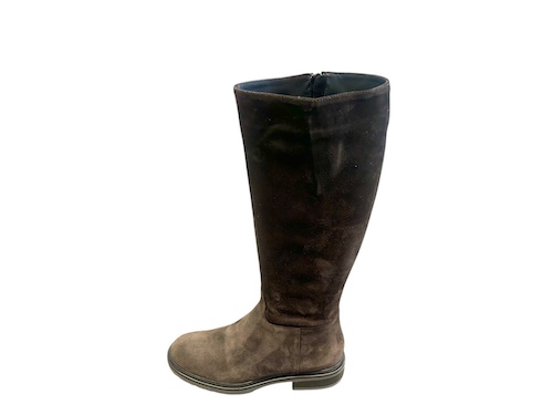 Le modèle 25547 est une botte en velours noir et taupe à petit talon carré de la marque Caprice.