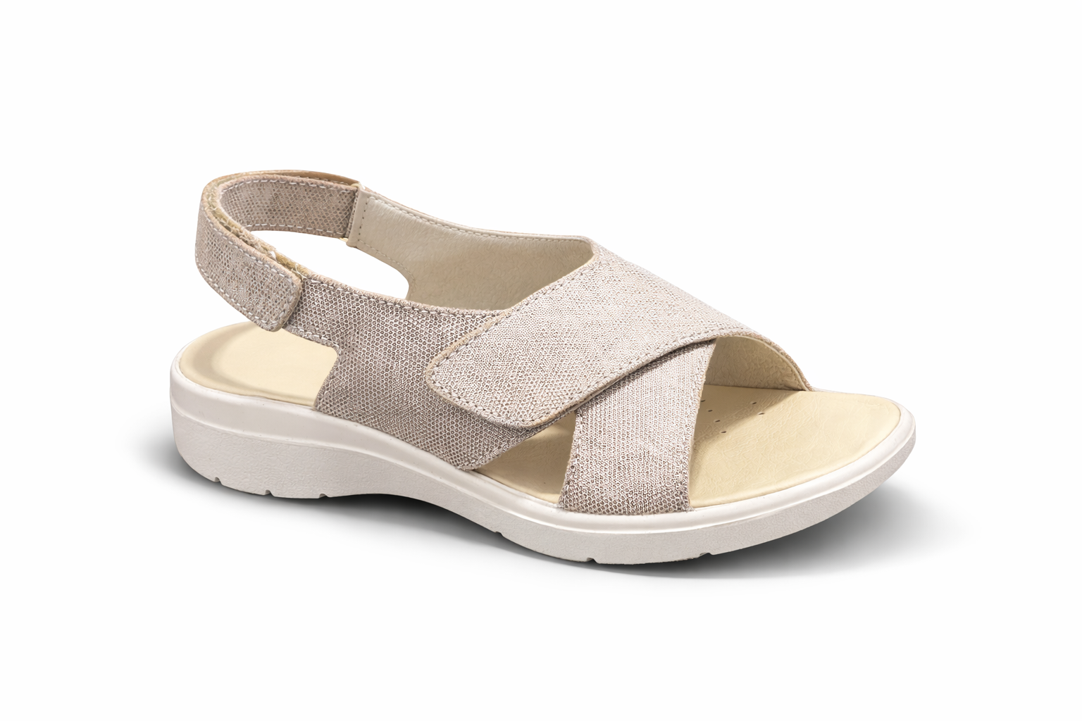 Cette sandale allie confort, maintien et élégance discrète, spécialement pensée pour les pieds sensibles.
