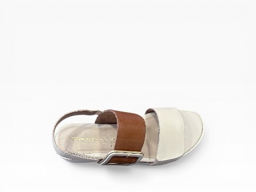 Sandale Tamaris au design moderne et confortable, composée de larges brides contrastées avec une grande boucle décorative et une fermeture réglable à l’arrière. Sa semelle légèrement compensée et amortissante assure un bon maintien et un confort optimal au quotidien, fidèle au style à la fois tendance et pratique de la marque