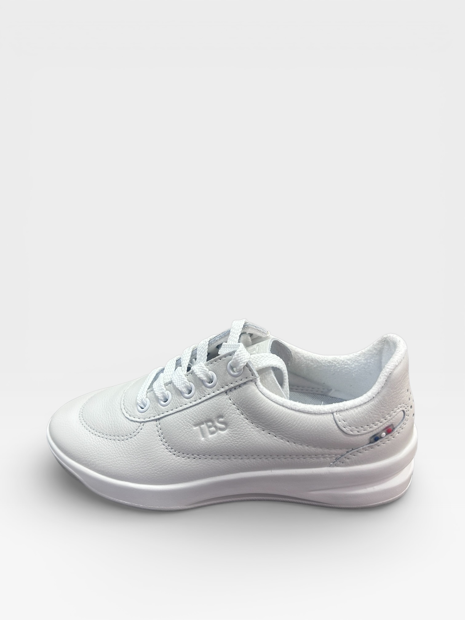 Logo TBS embossé sur le côté extérieur : subtil et raffiné, il reste dans la même teinte que la chaussure pour conserver l’esthétique minimaliste.