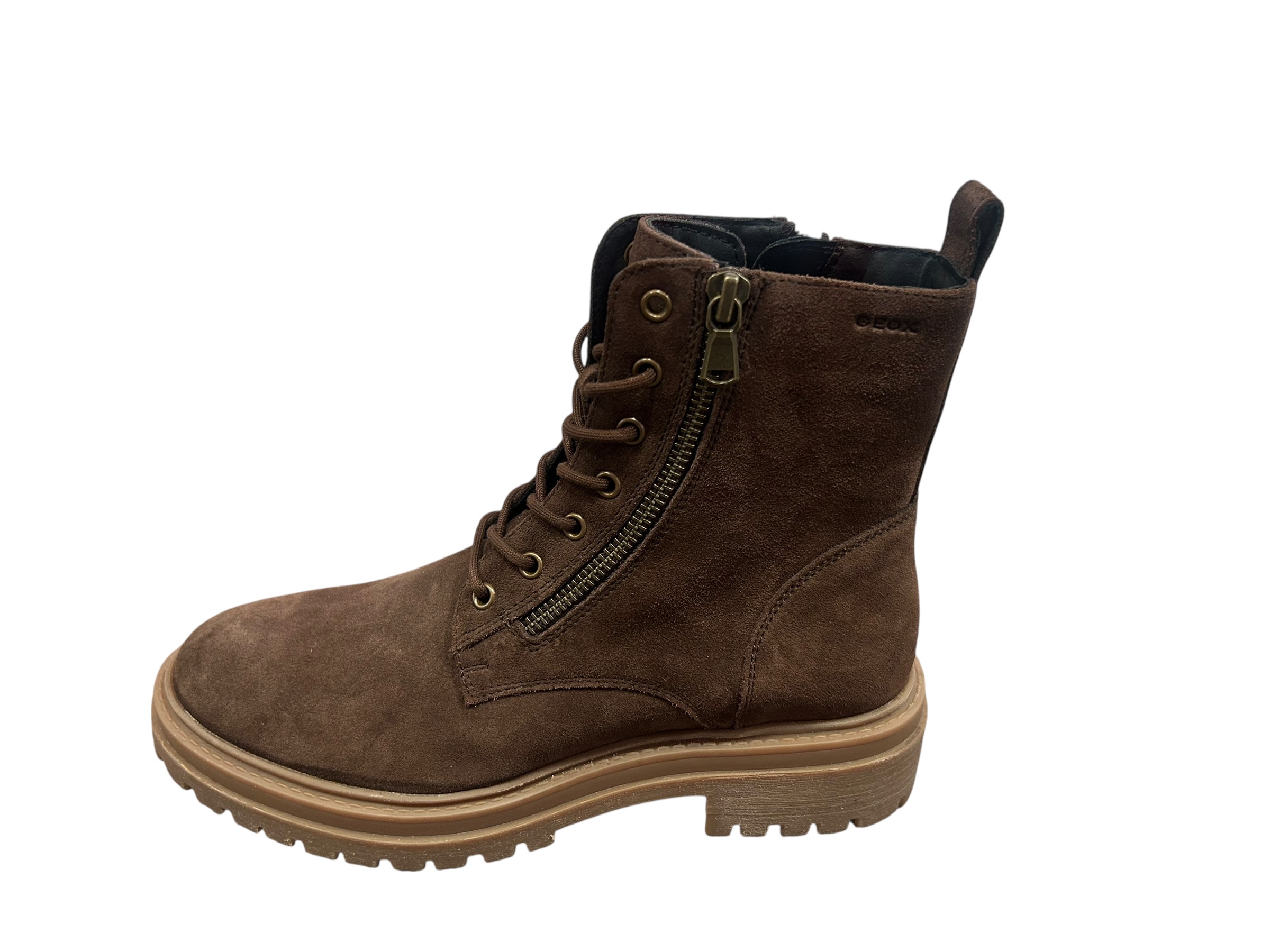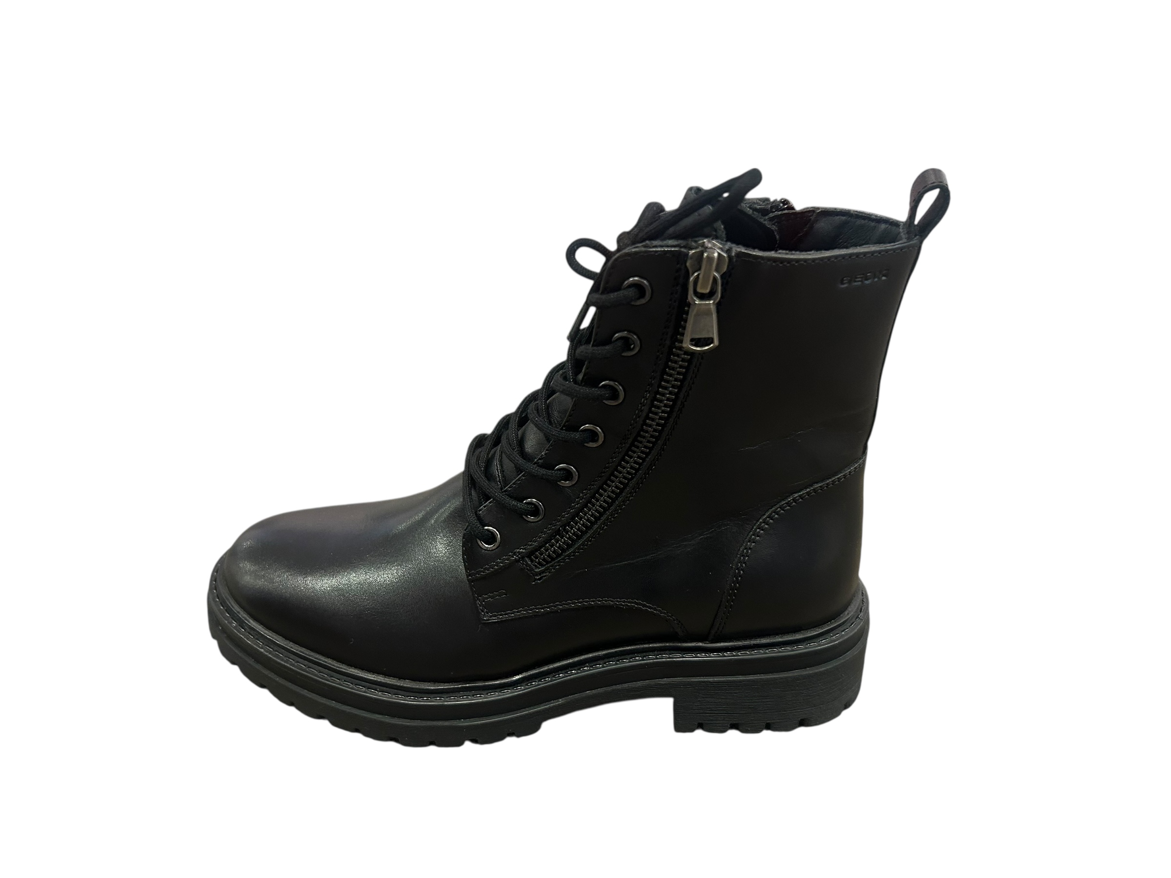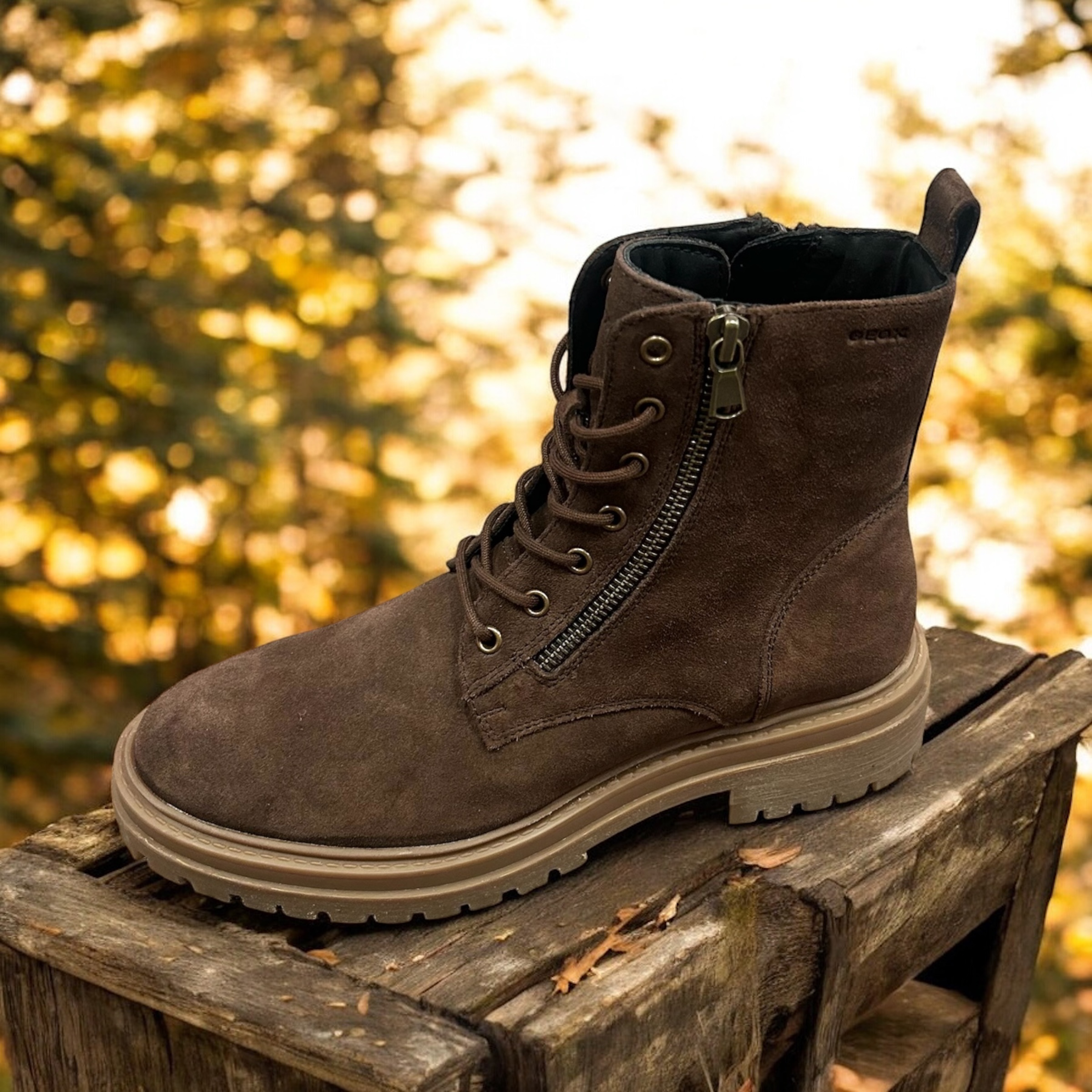 Le modèle Idea est une boots à lacet en cuir noir et velours marron de la marque Geox